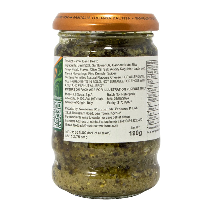 Sacla Basil Pesto is a timeless classic that brings the vibrant flavors of Liguria, Italy, to your table. We blend fresh, aromatic basil with nutty pine nuts, aged Parmesan cheese, and high-quality extra virgin olive oil to create a rich, authentic pesto. Its bright, fragrant flavor is perfect for quick meals and adds a touch of Mediterranean sunshine to any dish.