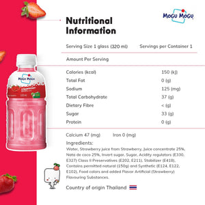 Refreshing Fruit Drink with Nata de coco in various flavours Recharge yourself with fruit and fruit fibres packed in a bottle of Mogu Mogu A Fun Drink with actual chewy pieces Imported in India from Thailand, the tropical land of fruits Avaliable in more than 60 countries in the world